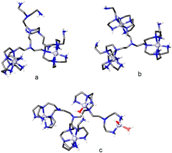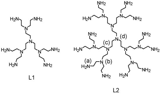 - Bazzicalupi, C.; Bianchi, A.; Giorgi, C.; Gratteri, P.; Mariani, P.; Valtancoli, B. Metal ion binding by a G-2 Poly(ethylene imine) dendrimer. Ion-directed self-assembling of hierearchical mono- and two-dimensional nanostructured materials. Inorg. Chem. 2013, 52, 2125–2137. [Google Scholar] [CrossRef] [PubMed]