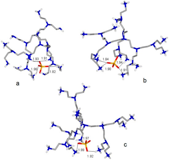 - Bazzicalupi, C.; Bianchi, A.; Giorgi, C.; Gratteri, P.; Mariani, P.; Valtancoli, B. Anion and ion-pair binding by a G-2 Poly(ethylene imine) dendrimer. Dalton Trans. 2013, 42, 12130–12138. [Google Scholar] [CrossRef] [PubMed]