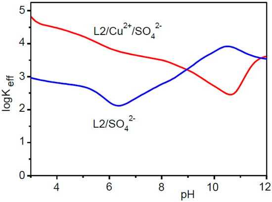 | L2 + 11H+ + SO42− = [H11L2(SO4)]9+ | 111.54 (5) | H16L216+ + SO42− = [H16L2(SO4)]14+ | 2.76 (7) |