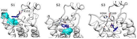 Systems were embedded in a 1-palmitoyl-2oleyl-sn-glycerol-3-phospho-choline (POPC) lipid bilayer, according to the pre-orientation provided by the Orientations Proteins in Membrane (OPM) database [36] and by using the VMD [37] membrane builder plugin. Lipids within 0.6 Å from the protein were removed and TIP3P model [38] water molecules were added to solvate the system by means of Solvate1.0 [39]. System charge neutrality was reached by adding Naì/Cl− counterions to a final concentration of 0.154. Equilibration was performed through a three-step procedure. In the first one, 1500 conjugate-gradient minimization steps were applied in order to reduce the clashes between protein and lipids. Then, a 5 ns long MD simulation was performed in the NPT ensemble, with a positional constraint of 1 kcal mol−1 Å−2 on ligand, protein, and lipid phosphorus atoms. During the second stage, 20 ns of MD simulation in the NPT ensemble were performed constraining all the protein and ligand atoms but leaving POPC residues free to diffuse in the bilayer. In the last equilibration stage, positional constraints were applied only to the ligand and protein backbone alpha carbons for further 5 ns of MD simulation.