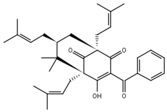 - Piccinelli, A.L.; Cuesta-Rubio, O.; Chica, M.B.; Mahmood, N.; Pagano, B.; Pavone, M.; Barone, V.; Rastrelli, L. Structural revision of clusianone and 7-epi-clusianone and anti-HIV activity of polyisoprenylated benzophenones. Tetrahedron 2005, 61, 8206–8211. [Google Scholar] [CrossRef]