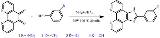 2.1. Microwave-Assisted Synthesis of the Imidazo[4,5-f][1,10]phenanthroimidazole Derivatives