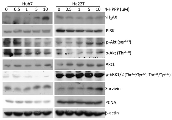 2.7. 4-HPPP Induces the Activation of γH2AX and Down-Regulates the Pro-Survival Pathways
