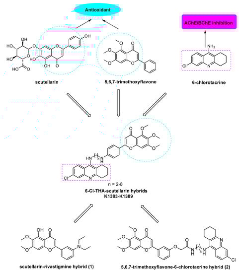Spilovska, K.; Korabecny, J.; Sepsova, V.; Jun, D.; Hrabinova, M.; Jost, P.; Muckova, L.; Soukup, O.; Janockova, J.; Kucera, T.; et al. Novel Tacrine-Scutellarin Hybrids as Multipotent Anti-Alzheimer’s Agents: Design, Synthesis and Biological Evaluation. Molecules 2017, 22, 1006. https://doi.org/10.3390/molecules22061006