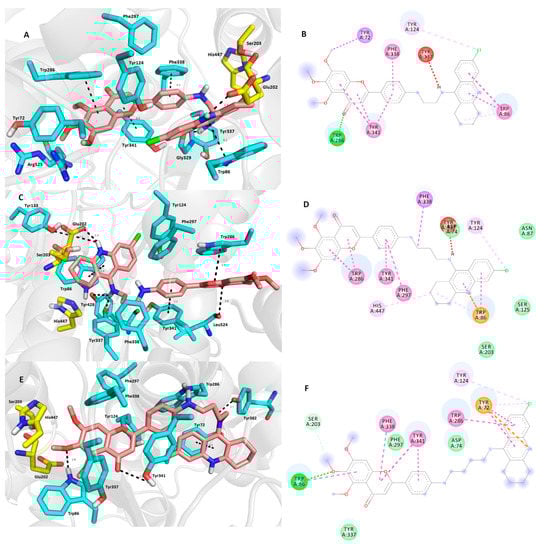 - Ariel, N.; Ordentlich, A.; Barak, D.; Bino, T.; Velan, B.; Shafferman, A. The “aromatic patch” of three proximal residues in the human acetylcholinesterase active centre allows for versatile interaction modes with inhibitors. Biochem. J. 1998, 335, 95–102. [Google Scholar] [CrossRef] [PubMed]