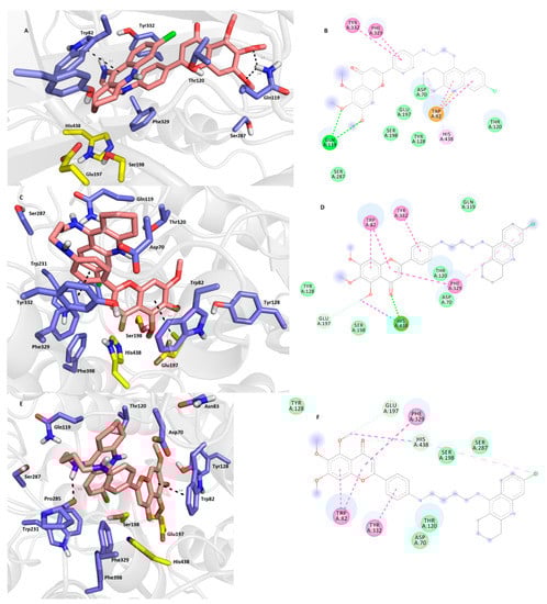 - Trott, O.; Olson, A.J. AutoDock Vina: Improving the speed and accuracy of docking with a new scoring function, efficient optimization, and multithreading. J. Comput. Chem. 2010, 31, 455–461. [Google Scholar] [CrossRef] [PubMed]