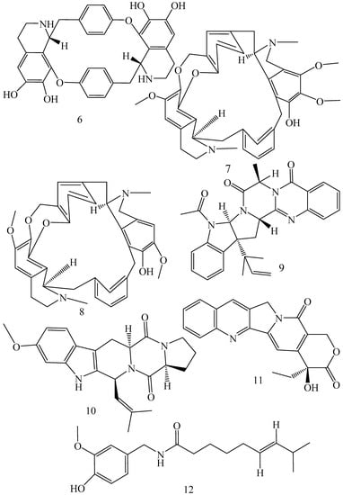 - Dewick, P.M. Medicinal Natural Products: A Biosynthetic Approach; John Wiley & Sons: Hoboken, NJ, USA, 2002. [Google Scholar]