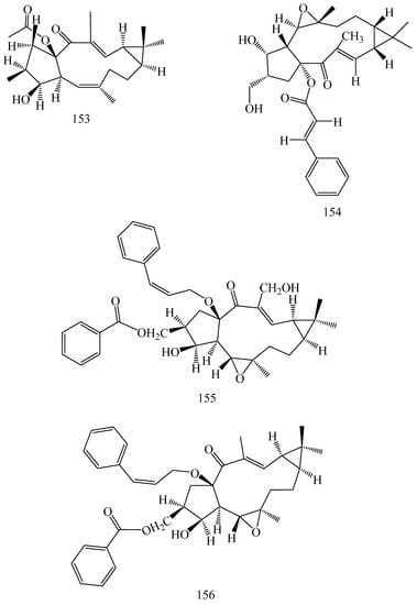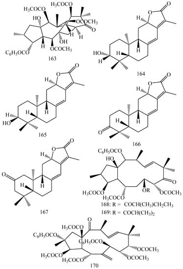 - Corea, G.; Di Pietro, A.; Dumontet, C.; Fattorusso, E.; Lanzotti, V. Jatrophane diterpenes from euphorbia spp. As modulators of multidrug resistance in cancer therapy. Phytochem. Rev. 2009, 8, 431–447. [Google Scholar] [CrossRef]
