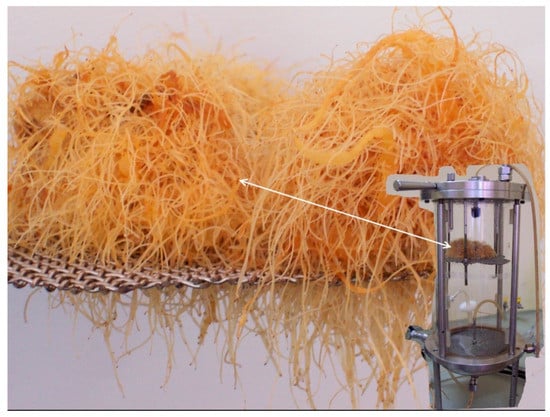Bioreactor cultures were performed in the 10-dm3 nutrient sprinkle bioreactor (Figure 3) containing 1.5 L Gamborg medium [52]. An AG CH-8604 Volketswill peristaltic pump (Chemap, Mannedorf, Switzerland) was used to provide recirculation, as well as doses of B-5 medium supplemented with 30 g L−1 sucrose, through a dispersal nozzle to the roots, which were placed on stainless steel, and then turned to the bottom reservoir. The operating time of the pump was 30 s, supplying approximately 45 mL of medium, and the breaks in medium supply were 60 s. The nutrient was kept at a constant temperature by a Thermomix MM thermostat (B. Braun Biotech International, Melsungen, Germany). The bioreactor was inoculated with roots from five shake flask cultures, of approx. 25 g fresh weight and 2.15 g dry weight. The incubation was carried out at a temperature of 26 °C ± 2 °C, in the dark, for 5 weeks.