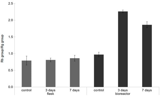 Rb group/Rg group parameter in the tested cultures after elicitation of 50 mg g−1 YE.