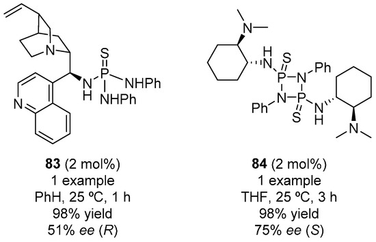 - Klare, H.; Neudoerfl, J.M.; Goldfuss, B. New hydrogen-bonding organocatalysts: chiral cyclophosphazanes and phosphorus amides as catalysts for asymmetric Michael additions. Beilstein J. Org. Chem. 2014, 10, 224–236. [Google Scholar] [CrossRef] [PubMed]