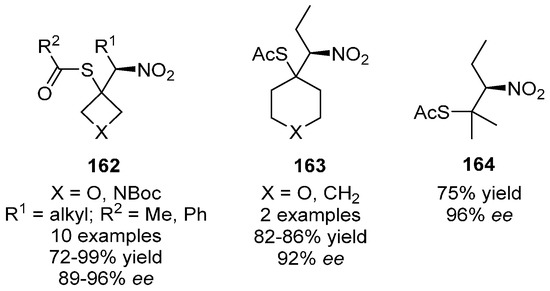- Phelan, J.P.; Patel, E.J.; Ellman, J.A. Catalytic enantioselective addition of thioacids to trisubstituted nitroalkenes. Angew. Chem. Int. Ed. 2014, 53, 11329–11332. [Google Scholar] [CrossRef] [PubMed]