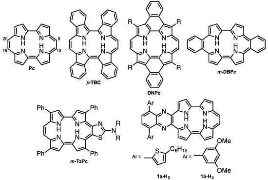 - Ono, N.; Yamada, H.; Okujima, T. Synthesis of Porphyrins Fused with Aromatic Rings. In Handbook of Porphyrin Science; Kadish, K.M., Smith, K.M., Guilard, R., Eds.; World Scientific: Singapore, 2010; Volume 2, pp. 1–102. [Google Scholar]