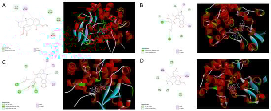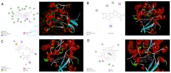 Molecular docking between isoquinoline alkaloids [(A) palmatine; (B) tetrahydropalmatine; (C) dauricine; (D) tetrandrine] and sterol 14α-demethylase.