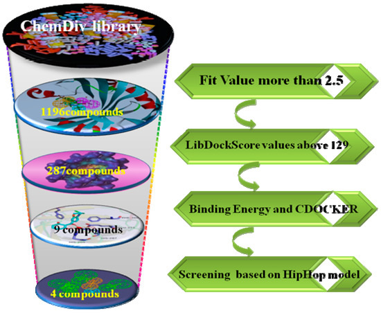 2.4. HipHop Pharmacophore Model-Based Virtual Screening