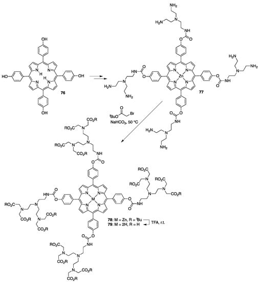 - Eggenspiller, A.; Michelin, C.; Desbois, N.; Richard, P.; Barbe, J.-M.; Denat, F.; Licona, C.; Gaiddon, C.; Sayeh, A.; Choquet, P.; et al. Design of porphyrin-DOTA-like scaffolds as all-in-one multimodal heterometallic complexes for medical imaging. Eur. J. Org. Chem. 2013, 2013, 6629–6643. [Google Scholar] [CrossRef]