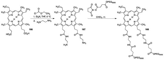 - Kim, W.J.; Kang, M.S.; Kim, H.K.; Kim, Y.; Chang, T.; Ohulchanskyy, T.Y.; Prasad, P.N.; Lee, K.-S. Water-soluble porphyrin-polyethylene glycol conjugates with enhanced cellular uptake for photodynamic therapy. J. Nanosci. Nanotechnol. 2009, 9, 7130–7135. [Google Scholar] [CrossRef] [PubMed]
