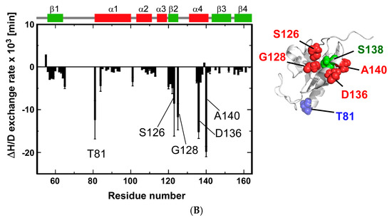 2.3.2. Changes in Conformational Exchange on the µs–ms Timescale by the S138A Mutation