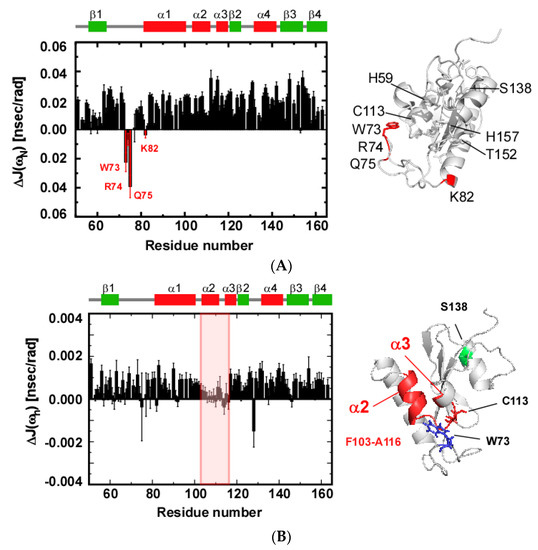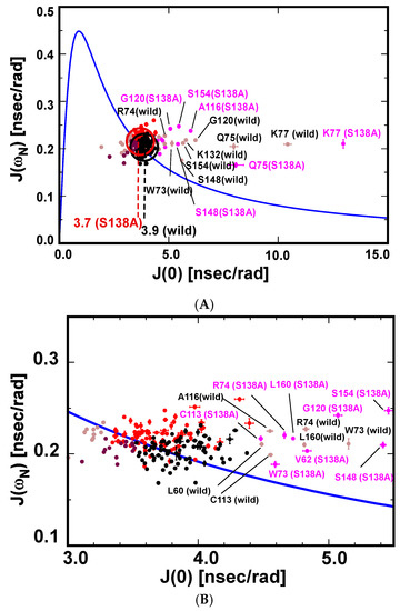 2.3. Conformational Dynamics of the S138A Mutant Revealed by 15N Nuclear Spin Relaxation Analysis