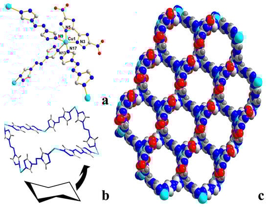 - Huang, Y.Q.; Zhao, X.Q.; Shi, W.; Liu, W.Y.; Chen, Z.L.; Cheng, P.; Liao, D.Z.; Yan, S.P. Anions-directed metal-mediated assemblies of coordination polymers based on the bis(4,4′-bis-1,2,4-triazole) ligand. Cryst. Growth Des. 2008, 8, 3652–3660. [Google Scholar] [CrossRef]