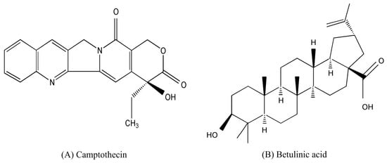 Chemical structures of (A): camptothecin (CPT), and (B): betulinic acid (BA).