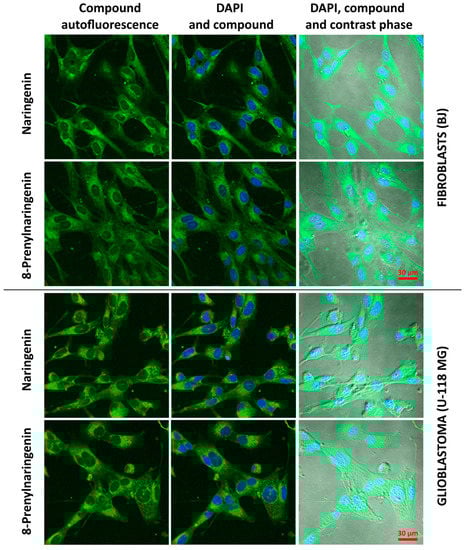 Stompor, M.; Uram, Ł.; Podgórski, R. In Vitro Effect of 8-Prenylnaringenin and Naringenin on Fibroblasts and Glioblastoma Cells-Cellular Accumulation and Cytotoxicity. Molecules 2017, 22, 1092. https://doi.org/10.3390/molecules22071092