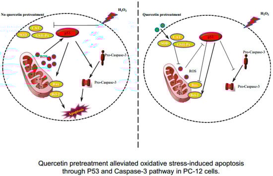 Quercetin pretreatment alleviated oxidative stress-induced apoptosis through the P53 and caspase-3 pathways in PC-12 cells.
