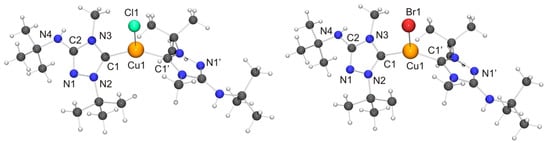 - Turek, J.; Panov, I.; Švec, P.; Růžičková, Z.; Růžička, A. Non-covalent interactions in coinage metal complexes of 1,2,4-triazole-based N-heterocyclic carbenes. Dalton Trans. 2014, 43, 15465–15474. [Google Scholar] [CrossRef] [PubMed]