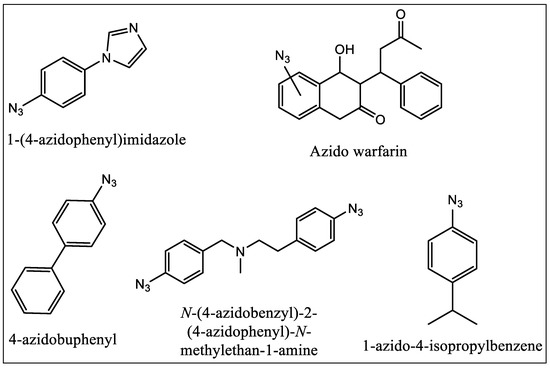 In 1962, Singh and Westheimer were the first who applied PALs to biochemical studies. PALs do not require any enzymatic activity to be utilized as active site probe. These ligands are in general very sensitive to the light and mostly are found to be stable in dark [72]. They can bind the chemically inert compound to the protein active site in the dark reversibly, and then irradiate the sample to produce the reactive moiety. In case of PALs with aliphatic side chains, the aliphatic group can be covalently labeled via photogeneration of a radical from the parent ligand. They do not always require nucleophilic amino acid residues to be in close proximity. The first example was reported by Swanson and Dus where they used tritiated 1-(4-azidophenyl)imidazole (Figure 10) [73] to successfully and quantitatively label P450cam. The compound was used as a general probe as N-phenylimidazole binds with high affinity to several P450 enzymes. The earliest success in photolabeling of P450 1A1 came in 1992 with the use of compounds having azo moiety on warfarin (Figure 10) [74]. The authors reported that they prepared different isomers of warfarin with azide group which was placed at different positions. In the same year Guengerich and his coworkers reported that they have successfully demonstrated the use of 4-azidobiphenyl (Figure 10) as a PAL of rat cytochrome P450 1A2 [75] and the covalent binding of the ligand following photolysis was shown in such a way that was PAL concentration-dependent and which increased with irradiation time.