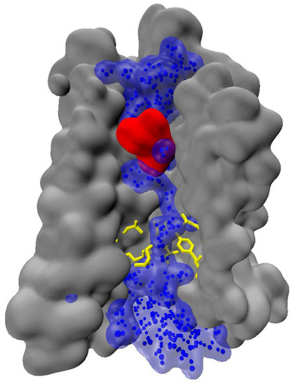 Knowledge of possible allosteric pockets in GPCRs is an important clue. Such pockets are most probably located at the end or along an allosteric pathway, and since many GPCRs share the seven transmembrane (7TM) scaffold as well as numerous conserved sequence motifs, such pathways might be present in many related receptors. In contrast to the orthosteric pockets in receptor structures, allosteric binding sites are often less defined and can be located in various areas. Since native stimuli usually come from the extracellular side, orthosteric pockets are also located at this side of the receptor, while location of the allosteric sites is not so obvious. Allosteric ligands can bind to every receptor surface, including extracellular, intracellular [3,4] and transmembrane regions [5,6,7]. Notably, not all allosteric sites can be identified at the first sight in the static X-ray structures or homology models. Such pockets are frequently located in less ordered regions than orthosteric ones, and slight conformational changes can easily affect their shape or charge distribution. Therefore, it is possible that a particular pocket is hidden in a static X-ray or homology model snapshot of a protein. Such allosteric sites are known as ‘hidden pockets’ [8,9,10,11,12]. As a consequence, cavity search performed on a static GPCR structure may miss a potent allosteric site. On the other hand, lack of a cavity in a putative allosteric site location, e.g., resulting from hot-spot calculation [13] doesn’t mean that such location should be rejected.