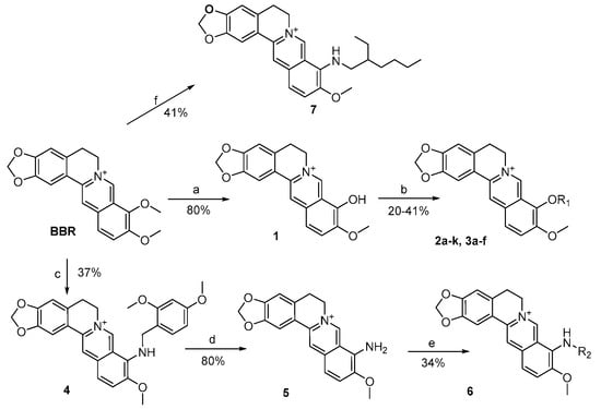Chemical structures of berberine (BBR), and its structure modification strategy.
