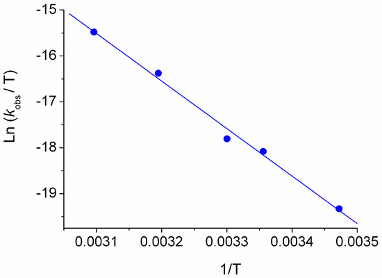 The activation enthalpy (ΔH≠) and the activation entropy (ΔS≠) have been calculated by the Eyring equation (2).