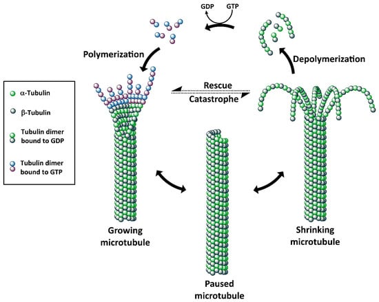- Akhmanova, A.; Steinmetz, M.O. Tracking the ends: A dynamic protein network controls the fate of microtubule tips. Nat. Rev. Mol. Cell Biol. 2008, 9, 309–322. [Google Scholar] [CrossRef] [PubMed]