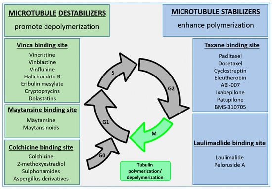 Classification of tubulin stabilizers and destabilizers arresting cell cycle at G2/M phase.