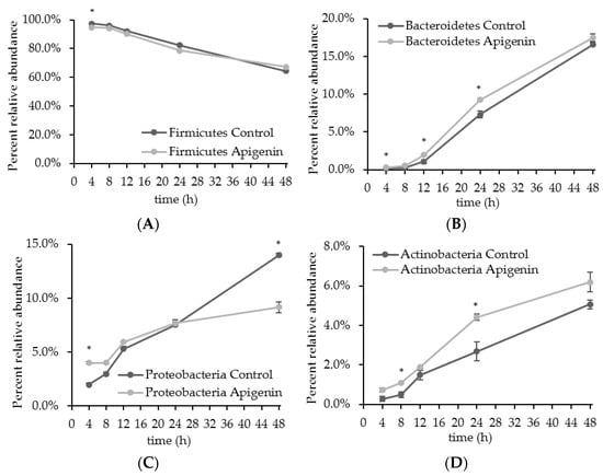 2.2. The Effect of Apigenin on a Human Gut Microbial Community In Vitro
