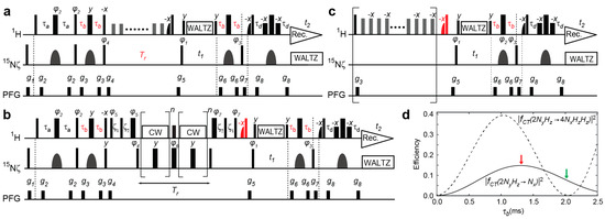 - Hansen, D.F.; Kay, L.E. Improved magnetization alignment schemes for spin-lock relaxation experiments. J. Biomol. NMR 2007, 37, 245–255. [Google Scholar] [CrossRef] [PubMed]