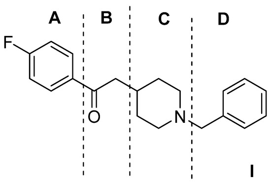 Gilligan et al. [69] identified a lead compound selective for σR (Ki = 6 nM). The lead compound I was analyzed into four sections, corresponding to four pharmacophore moieties, as depicted in Figure 1.