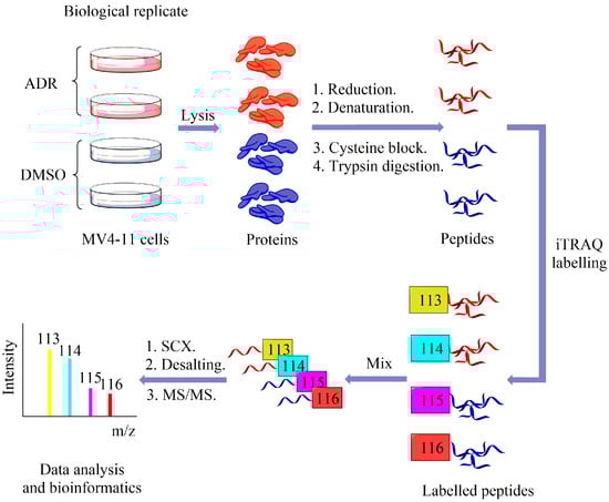 General workflow of iTRAQ coupled with LC-MS/MS.