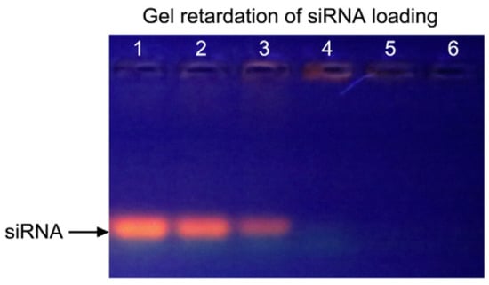 The quantitative analysis of gold nanorods (Au NRs) for the delivery of siRNA. Agarose gel electrophoresis was used to detect the bonding between siRNAs and Au NR-PSS-PAH []. Reproduced with permission from reference []. Copyright (2015), with permission from Elsevier.