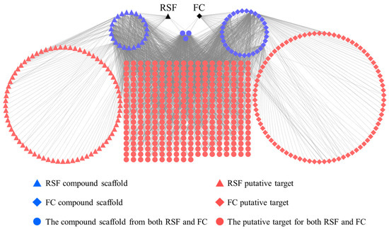 RSF and FC have 335 common putative targets, 159 uncommon putative targets, and 3 common molecular scaffolds that associate with common putative targets.