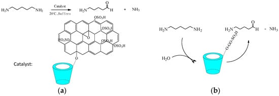 Saghatforoush et al. [23] designed and prepared β-cyclodextrin-graphene oxide-SO3H composite-modified glassy carbon electrode (β-CD/GO-SO3H–GCE) as an electrochemical sensor, which could catalyze the oxidation reaction of cadaverine to 5-aminopentanal (Scheme 3a). Because the derivative of β-CD could accommodate cadaverine and promote its electron-transfer, the complexes provided a higher electroactive surface area. The main advantage of using the β-CD/GO-SO3H–GCE was easy and quick surface renewal after each use. On the other hand, the electrochemical sensor was successfully used to determine cadaverine in fish samples, and the electrode exhibited good repeatability and stability. Those results might open up a new approach for the use of the β-CD/GO-SO3H/GCE in the biochemical and medical analysis fields. The mechanism of the oxidation of cadaverine was proposed (Scheme 3b).