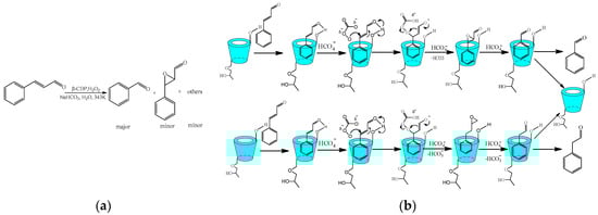 (a) The oxidation reaction of cinnamaldehyde catalyzed by β-CD; (b) the mechanism of oxidation of cinnamaldehyde catalyzed by β-CD.