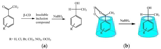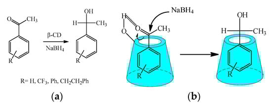 (a) The reduction reaction of substituted acetophenones catalyzed by β-CD; (b) the reduction mechanism of substituted acetophenones catalyzed by β-CD.