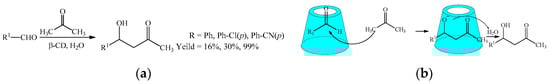 (a) The asymmetric aldol reaction of aldehydes and acetone catalyzed by β-CD; (b) the plausible mechanism of the asymmetric aldol reaction of aldehydes and acetone.