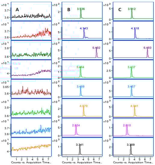 2.2.4. Extraction Recovery and Matrix Effect