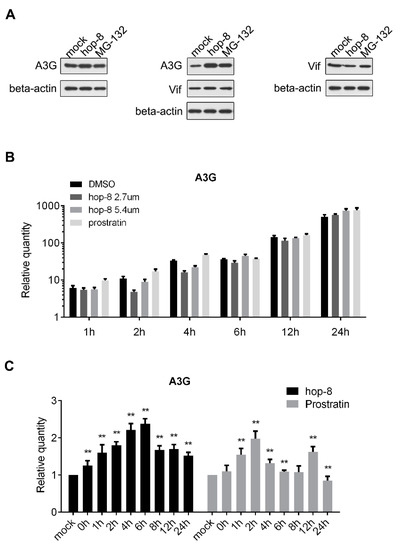 2.3. Hop-8 Restored A3G Levels in Cells Undergoing Vif-Mediated A3G Degradation