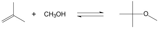 - Linnekoski, J.A.; Krause, A.O.I.; Struckmann, L.K. Etherification and hydration of isoamylenes with ion exchange resin. Appl. Catal. A 1998, 170, 117–126. [Google Scholar] [CrossRef]