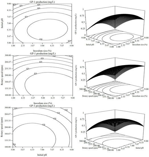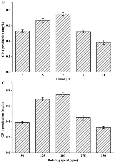 2.1. Effects of Inoculum Volume, Initial pH and Rotating Speed on Glycoprotein GP-1 Production