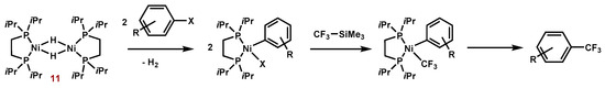 - Dubinina, G.G.; Brennessel, W.W.; Miller, J.L.; Vicic, D.A. Exploring trifluoromethylation reactions at nickel: A structural and reactivity study. Organometallics 2008, 27, 3933–3938. [Google Scholar] [CrossRef]