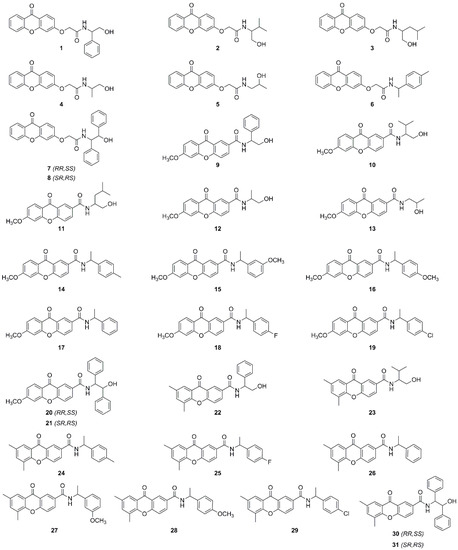 Chemical structures of chiral xanthonic analytes 1–31.